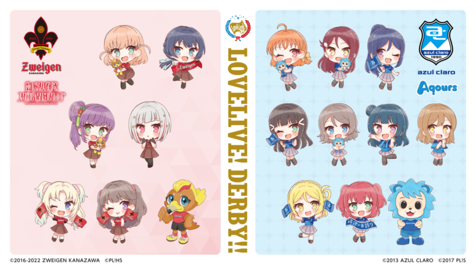 2月25日(日)、「ラブライブ!サンシャイン!!」の舞台「沼津市」をホームタウンの1つとするアスルクラロ沼津と「ラブライブ!蓮ノ空女学院スクールアイドルクラブ」の舞台「金沢市」をホームタウンの1つとするツエーゲン金沢の間で開催される「ラブライブ!ダービー」にあわせて、オリジナルデフォルメイラストの展開とコラボグッズの展開が決まりました!