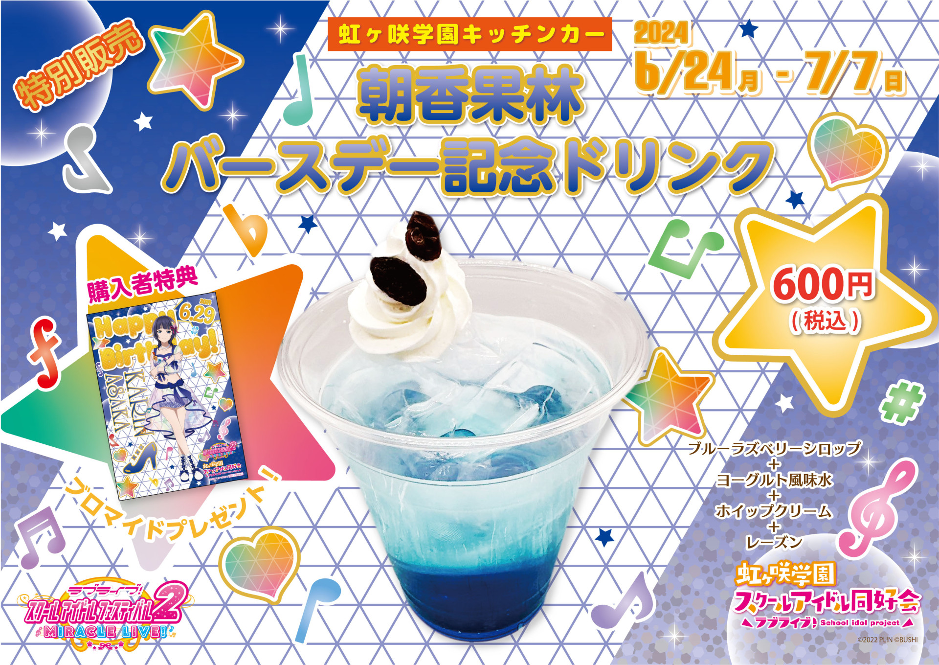 虹ヶ咲学園スクールアイドル同好会各ユニットの楽曲、「Blue!」「PASTEL」「Shadow Effect」「Vroom Vroom」をイメージしたデザインのTシャツに仕上げました。